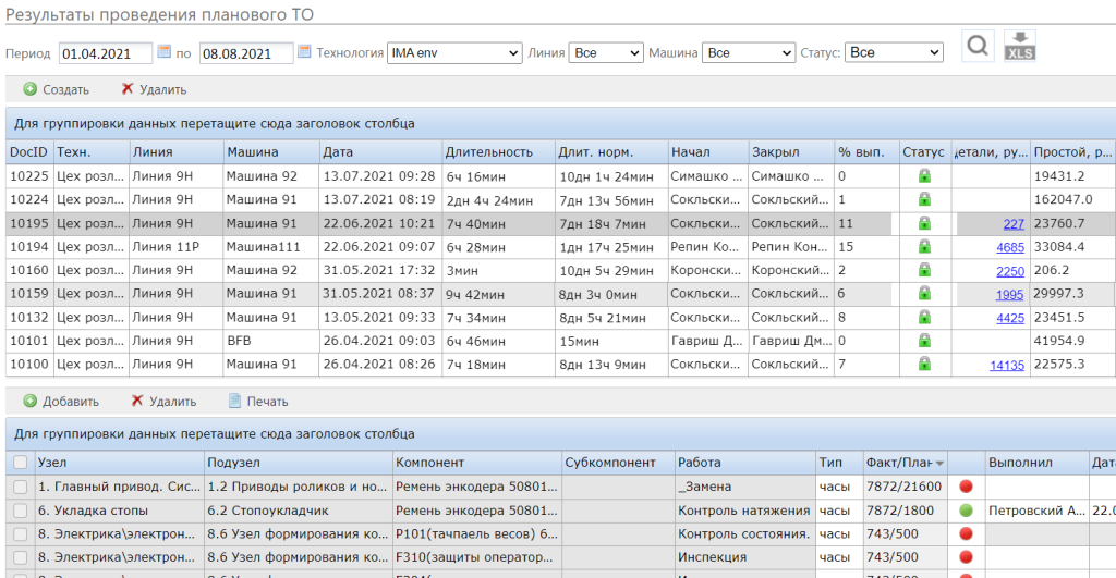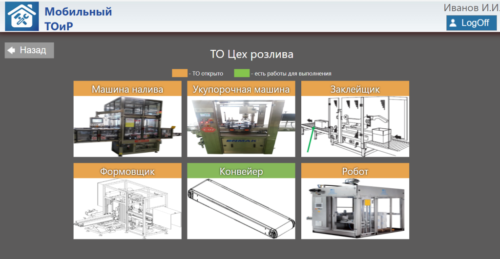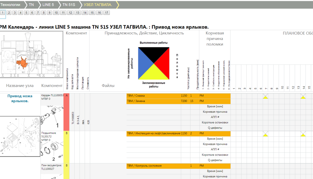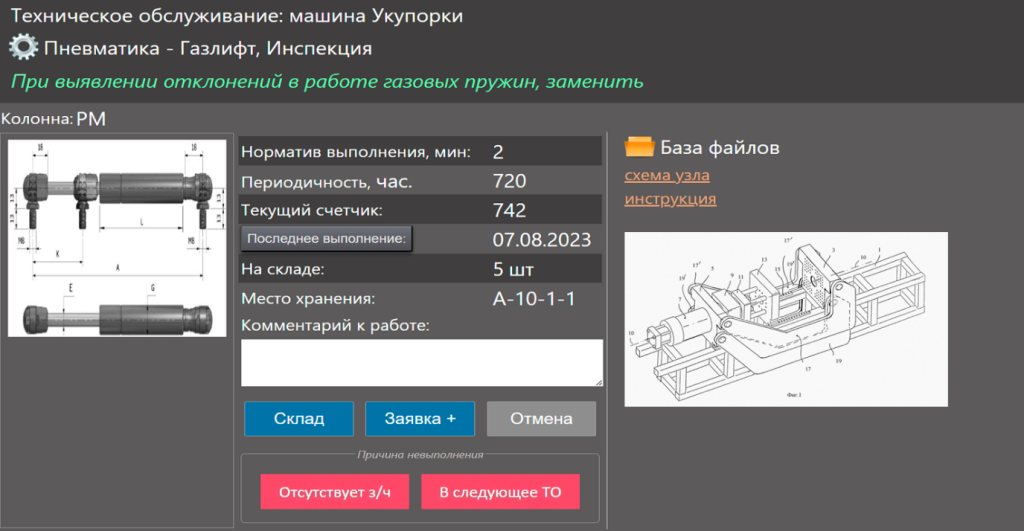 - Максимальная информация для наладчика в процессе: изображение и расположение узла, наличие соответствующего компонента на складе, история обслуживания, сопроводительная документация (инструкции, стандарты и др.)