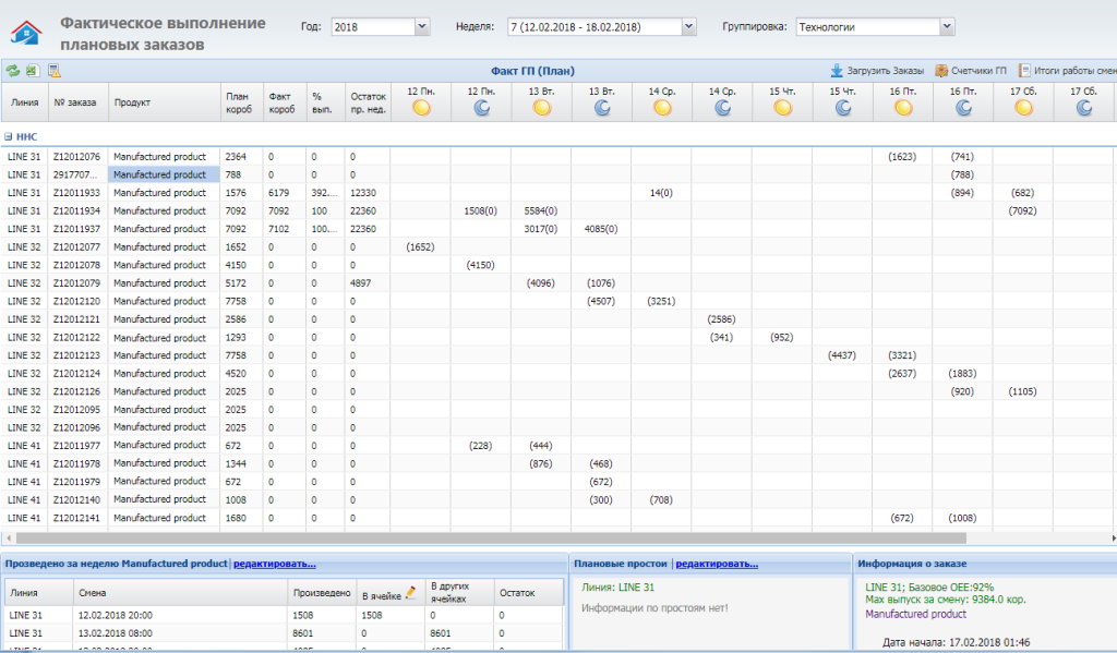 Формирование или получение из других систем плана выпуска продукции с учетом плановых остановок и переоснасток