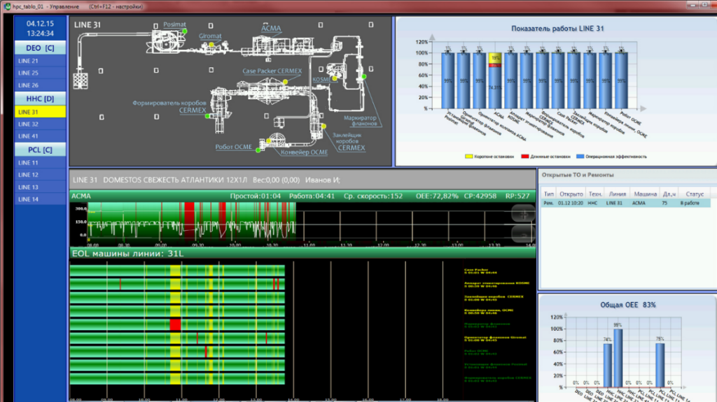 - Диспетчеризация процессов. В режиме реального времени отображается различного рода информация о текущем состоянии ключевых параметров и показателей на производстве.